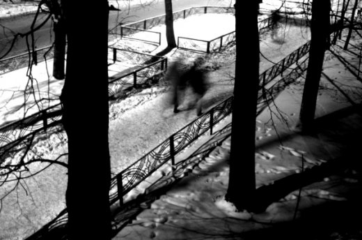 Нели шла не оглядываясь. Неожиданно, сзади, она услышала шаги. Оглянувшись, она заметила, что к ней приближался черный силуэт. Этот квартал был почти без освещения, так что невозможно было рассмотреть, кто это. Ее сердце сжалось и стало более учащенно биться в груди. Незнакомец догнал Нели, но видно было, что он спешил куда-то дальше, так что девушка смогла перевести дыхание, немного поубавив свой темп ходьбы. На несколько секунд незнакомец остановился, оглянувшись. Он глянул в глаза, которые сейчас были уже заметны, так как свет фонарей этого квартала достаточно был ярким, он осветил ее лицо. Она тоже встретилась с ним взглядом... В его глазах была печаль, а также глубоко затаившийся страх. Затем, он развернувшись, зашагал прочь. Но Нели вдруг неожиданно для себя вскрикнула... Что это было? Она почувствовала его страх. Так, словно, она бежала от чего-то, а не он. В этом взгляде она увидела себя... Она такая же жертва, как он... Она убегает, только по-своему... В его глазах не было презрения, хотя казалось, что он увидел все, что проиходит в ее душе. В его же глазах было понимание, а не осуждение. Словно он и был тем таинственным художником, отыскавшим сбежавшую с холста героиню...