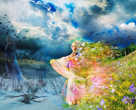 Я вижу, как на ярком солнце его белоснежные локоны ещё искрятся последним снегом,