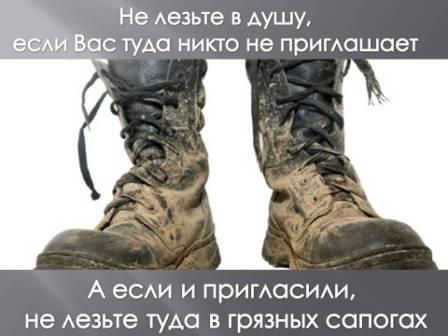 Не так давно я услышала одну фразу: «Не лезьте в душу, если Вас туда никто не приглашает. А если и пригласили, не лезьте туда в грязных сапогах».
