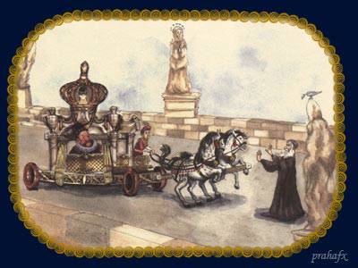 Король пришел в Прагу, бесцельно ходил по улицам, видел своих дворян в каретах и печалился оттого, что он несчастнее их. Вспомнил про раввина и с ногами в ссадинах и пустым желудком остановился он около домика с почерневшими стенами в пражском гетто. Постучал в дверь и с тревогой ждал, что будет.