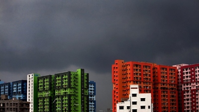 Сырые, низко, над домами.