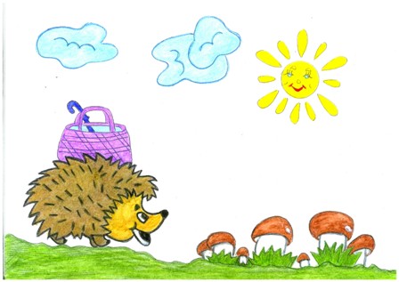 Возле леса на опушке стоял маленький домик, в нём жил ёжик Павлик со своими родителями. Однажды летним утром, когда Павлик проснулся, ему на ум пришла мысль, сходить в лес за грибами. Он спросил у мамы разрешения, и она охотно согласилась, только строго предупредила: «Далеко в лес не ходи, чтобы не заблудиться». Павлик взял с собой лукошко под грибочки и палочку - выручалочку, чтобы разгребать мох.